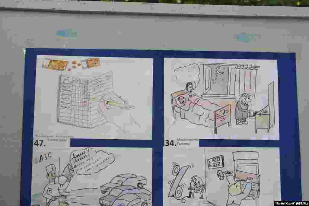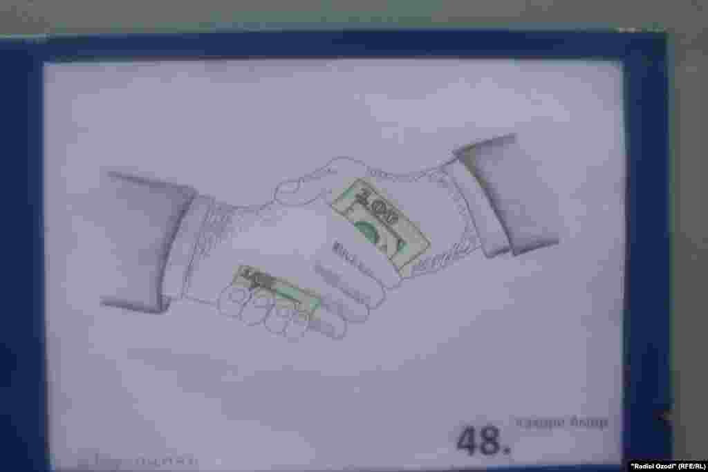 В течение трех дней в центре Душанбе прошла выставка работ на тему  «Искусство против коррупции». Организаторы - Швейцарский офис по сотрудничеству совместно с Агентством по борьбе с коррупцией при партнерстве с ОО "Кухи нор". На выставке были представлены карикатуры, шаржи, коллажи, рисунки, социальные ролики, ставшие победителями конкурса, объявленного Швейцарским офисом и иные работы, отобранные оргкомитетом. Таджикская служба РСЕ/РС. 25.5.11.