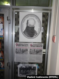 На пятом этаже Дома профсоюзов расположился "сектор националистов", его называют еще "майдановским Беркутом". При входе на дверях – портрет Тараса Шевченко с черной повязкой на лице и призывом Кобзаря: " …вставайте, кандалы разорвите и вражеской злой кровью свободу окропите".