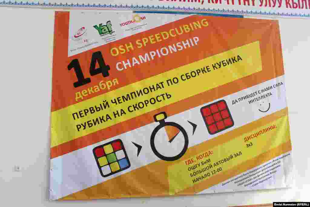 Первый чемпионат города Ош по скоростной сборке кубика Рубика среди учащихся средних школ был организован чемпионом и рекордсменом Кыргызстана по скоростной сборке кубика Рубика в категориях 4х4 и 5х5 Болотбек уулу Нурсултаном. По его инициативе в шести городских школах были созданы клубы спидкуберов, где с начала учебного года более 300 желающих были обучены навыкам сборки кубика. Мероприятие было поддержано Фондом "Сорос - Кыргызстан" и мэрией Оша. "Азаттык", Кыргызская служба РСЕ/РС