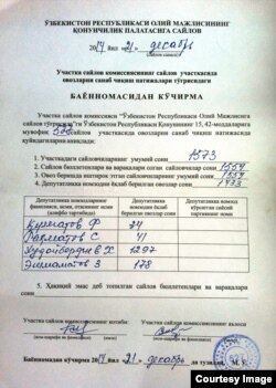 Источник из Чирокчи, написавший письмо в радио «Озодлик», заявил, что подделкой данных голосования якобы руководил хоким района Равшан Комилов.