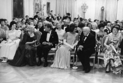 Прием в честь нобелевских лауреатов Западного полушария. Справа от Джеки Кеннеди – поэт Роберт Фрост. Белый Дом, Восточный зал, 29 апреля 1962 года.