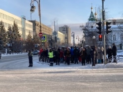 Как сообщают Сибирь.Реалии, вчера в Тюмени задержали координатора штаба Навального Ивана Вострикова, а сегодня активиста того же штаба Сергей Осколкова и гражданского активиста Глеба Шафигуллина. Сегодняшняя акция началась шествием: люди двинулись от Технопарка по центральной улице в сторону Областной думы. Полицейские пыталась их задержать, но у них это не получилось.