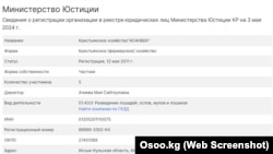 Согласно данным сайта Osoo.kg, на имя Маи Алиевой зарегистрированы фермерское хозяйство «Асанбек» в Чолпон-Ате и оздоровительный центр «Барс».