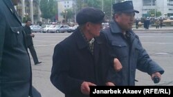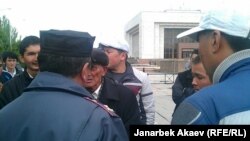 Часть митингующих решила пойти в сторону здания Жогорку Кенеша. Милиция задержала инициатора идеи.
