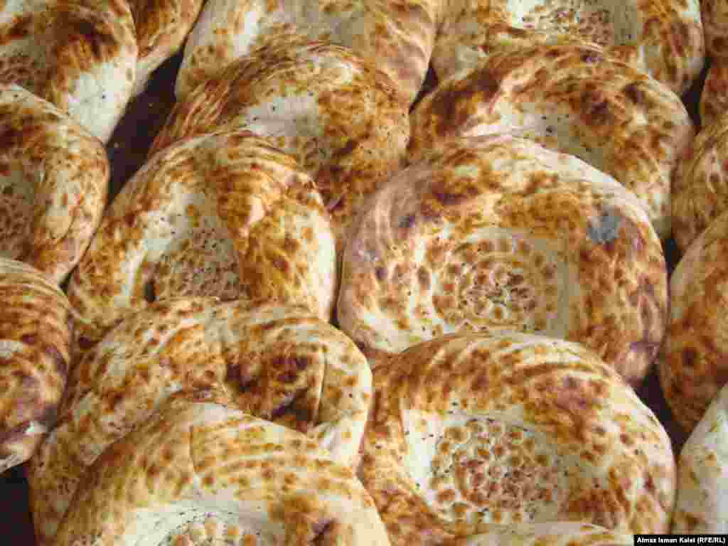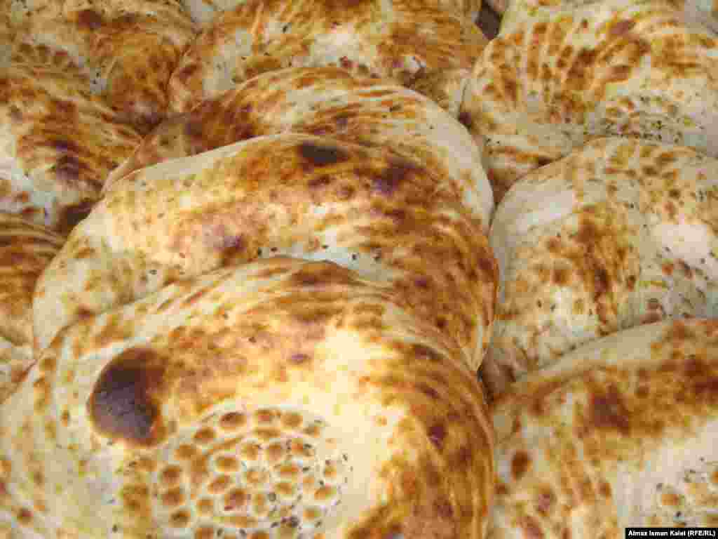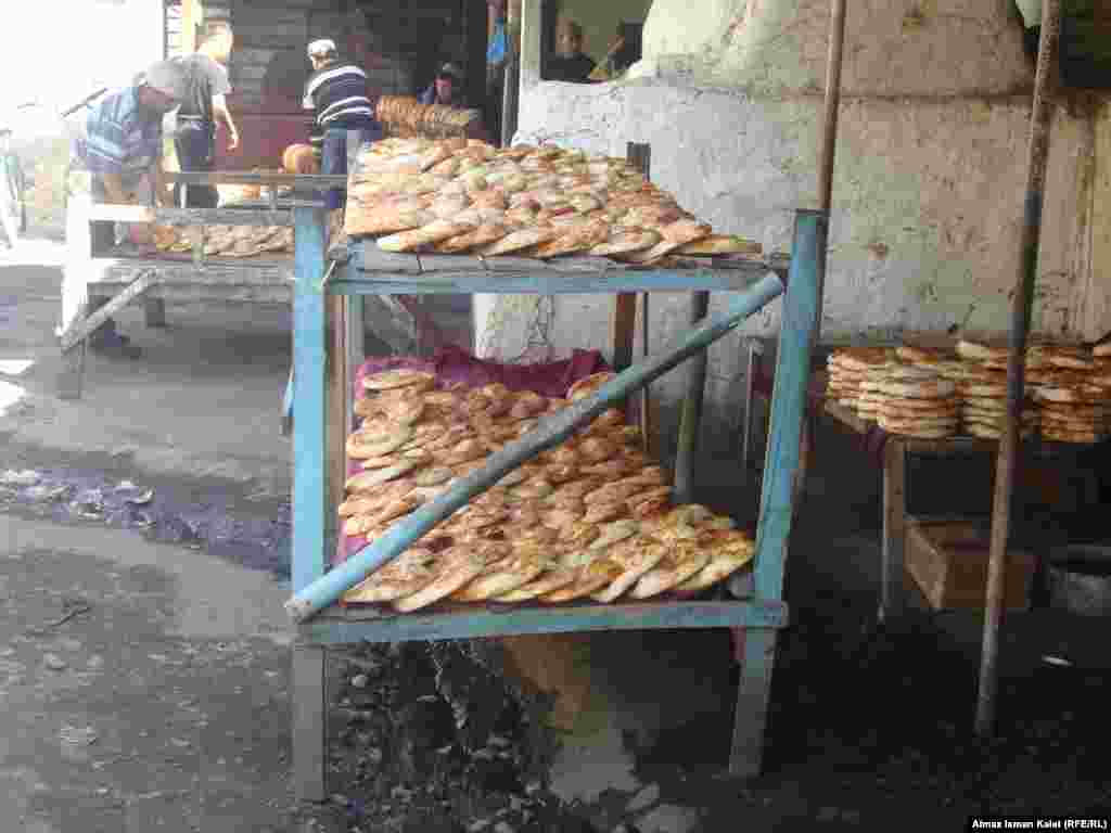 Лепешка – бывает самых разных форм и размеров. Больше всего в Ферганской долине популярна – маленькая лепешка, или как ее тут называют «наавай нан». Здесь почти в каждом квартале любого города или села есть тандыры, где с раннего утра и до полудня пекут ароматные лепешки с тмином. Готовят и пекут лепешки исключительно мужчины. Фотографии сделаны в Ошской области. "Азаттык", Кыргызская служба РСЕ\РС