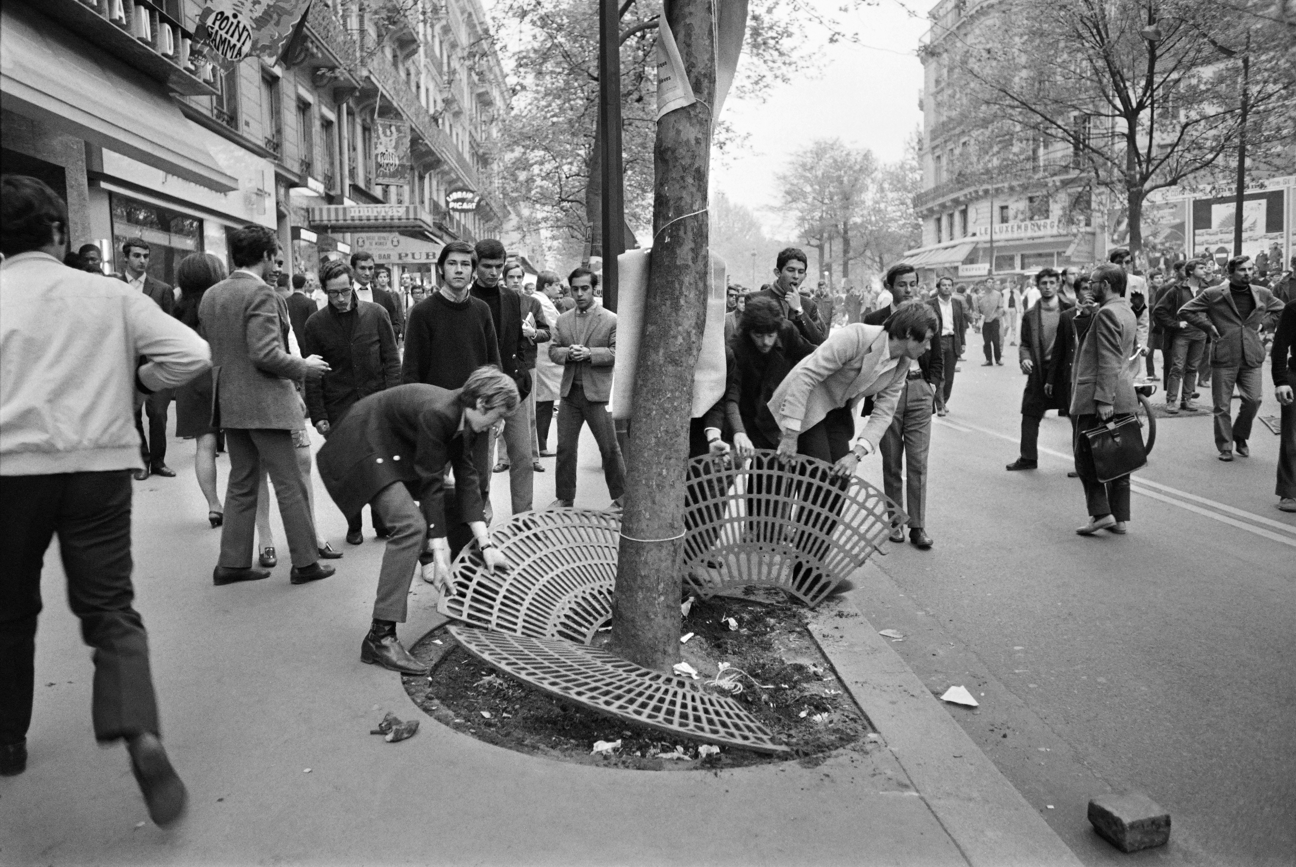 Студенты вооружались камнями, разбирая мостовые, хотя сейчас, глядя на фотографии, можно решить, что они просто иллюстрируют свой лозунг "Под мостовыми – пляж".
