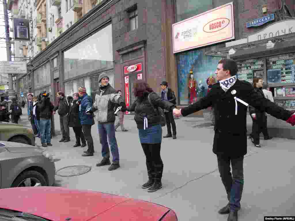 Неподалеку от Госдумы собрались несколько десятков активистов – для проведения акции «Белая дума». Протестующие хотели окружить здание Госдумы «белым кольцом» или просто прогуливаться возле него с белыми лентами - символом кампании "За честные выборы". Русская служба РСЕ\РС