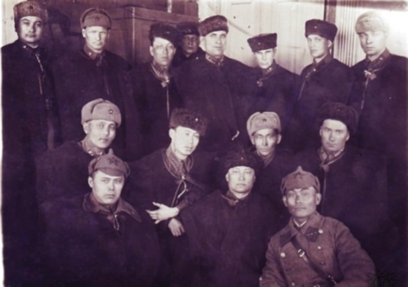 Командный состав 106-й Акмолинской казахской кавалерийской дивизии. Фото с персональной страницы Макки Каражановой, руководителя казахского землячества Харькова, на сайте «Наследники славы».